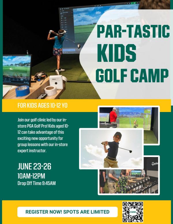 Join our golf clinic led by our in-store PGA Golf Pro! Kids aged 10-12 can take advantage of this exciting new opportunity for group lessons with our in-store expert instructor.