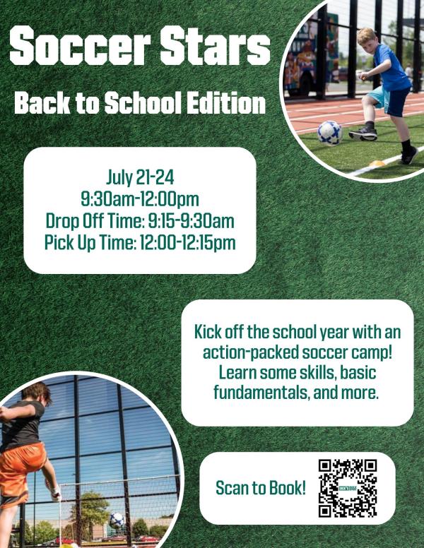 Kick off the school year with an action-packed soccer camp! Learn some skills, basic fundamentals, and more.