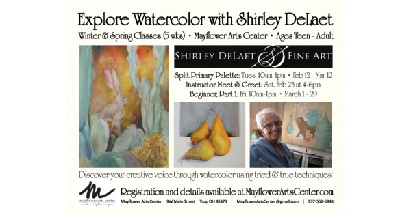 Beginning Watercolor Class with Shirley DeLaet is taking place at Mayflower Arts Center, which is located at 9 West Main Street in Troy. Mayflower Arts Center - From exhibits in the art gallery, to a creative arts studio, we offer art classes, summer art camps, paint nights, movies, performances, & concerts, making us your complete arts destination.