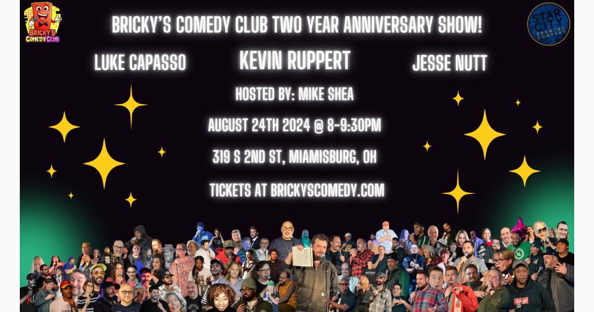 Bricky's Two Year Anniversary Show is taking place at Bricky's Comedy Club, which is located at 319 S 2nd St in Miamisburg. Bricky's Comedy Club - Bricky's Comedy Club is a live comedy venue featuring some of the best up-and-coming comedy acts from around the Midwest and surrounding regions.