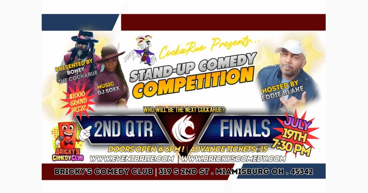 Cockarue Contest Early Show is taking place at Bricky's Comedy Club, which is located at 319 S 2nd St in Miamisburg. Bricky's Comedy Club - Bricky's Comedy Club is a live comedy venue featuring some of the best up-and-coming comedy acts from around the Midwest and surrounding regions.