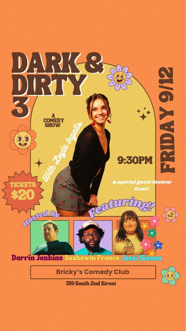 Dark & Dirty with Leyla Ingalls is taking place at Bricky's Comedy Club, which is located at 319 S 2nd St in Miamisburg. Bricky's Comedy Club - Bricky's Comedy Club is a live comedy venue featuring some of the best up-and-coming comedy acts from around the Midwest and surrounding regions.
