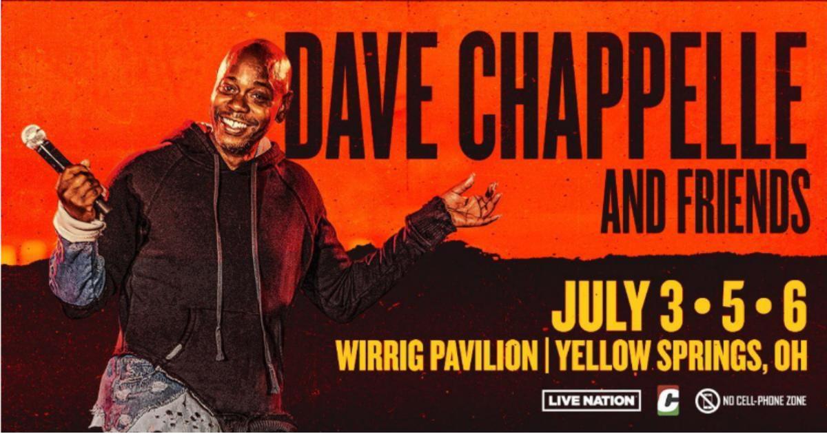JUST ANNOUNCED: Dave Chappelle & Friends at Wirrig Pavilion in Yellow Springs, OH on July 3, 5, & 6.