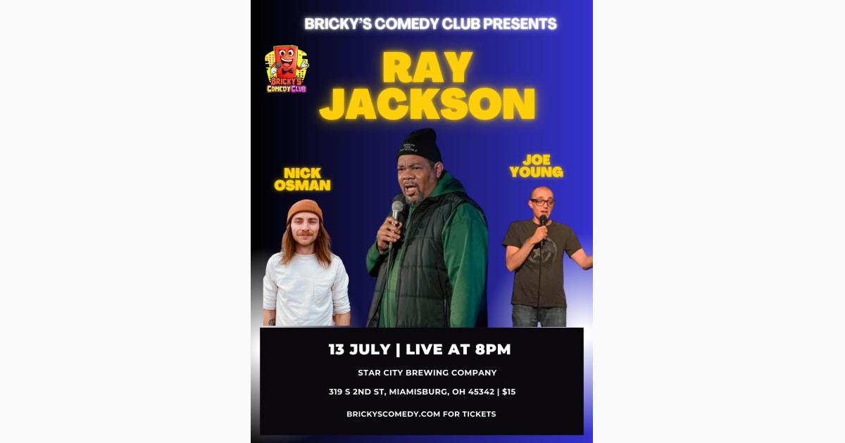 Dayton comedy legend Ray Jackson is coming to Bricky's for a fun night of standup! He's joined by Nick Osman and Joe Young!