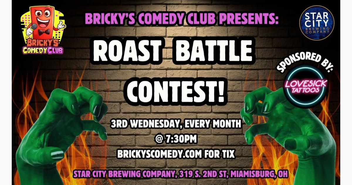 Roast Battle Championship @ Bricky's Comedy Club is taking place at Bricky's Comedy Club, which is located at 319 S 2nd St in Miamisburg. Bricky's Comedy Club - Bricky's Comedy Club is a live comedy venue featuring some of the best up-and-coming comedy acts from around the Midwest and surrounding regions.
