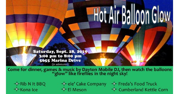 This year we're glowing and growing! We'll host hot air balloons along the Great Miami River on Marina Dr. Food trucks! Music! Fun! Rib-N-It BBQ, Cumberland Kettle Corn, Kona Ice, Ele’ Cake Co & El Meson