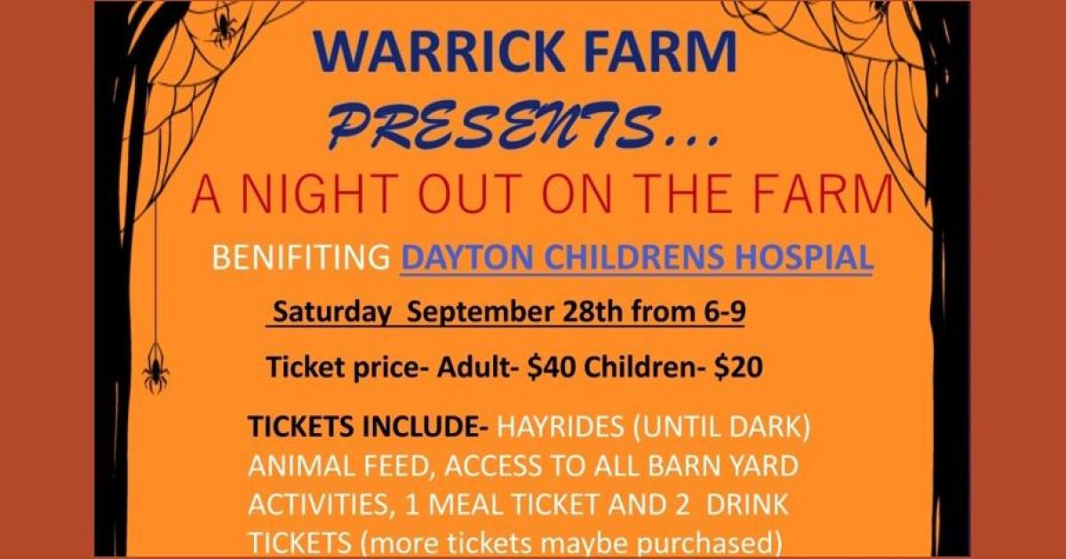 Night out at the Farm benefiting Dayton Children's Hospital is taking place at Warrick Farm, which is located at 8055 South Union RD in Miamisburg. Warrick Farm - Family fun farm in Miamisburg, Ohio.