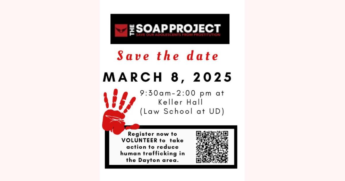 Dayton, Ohio - On March 8th, the University of Dayton will host the SOAP (Save Our Adolescents from Prostitution) Anti-Human Trafficking Event to raise awareness about the devastating issue of human trafficking in our community.