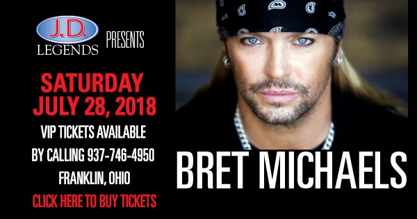 Bret Michaels at JD Legends is taking place at JD Legends Entertainment Complex, which is located at 65 Millard Dr in Franklin. JD Legends Entertainment Complex - JD Legends entertainment complex is an indoor/outdoor complex featuring a 24 lane bowling center, 3 sand volleyball courts, a tiki bar , sports bar , restaurant , night club and concert venue.
