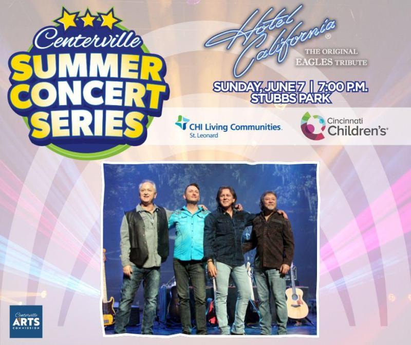Hotel California: A Tribute to the Eagles is taking place at Stubbs Park, which is located at 255 W. Spring Valley Road in Centerville. Stubbs Park - Leonard E. Stubbs Memorial Park & Centerville Community Amphitheater is located west of S.R. 48 along the north side of W. Spring Valley Rd. next to the Centerville Police Building. Stubbs Park provides numerous amenities to the public including state-of-the-art playground equipment, basketball and tennis courts, and an inline skating rink.