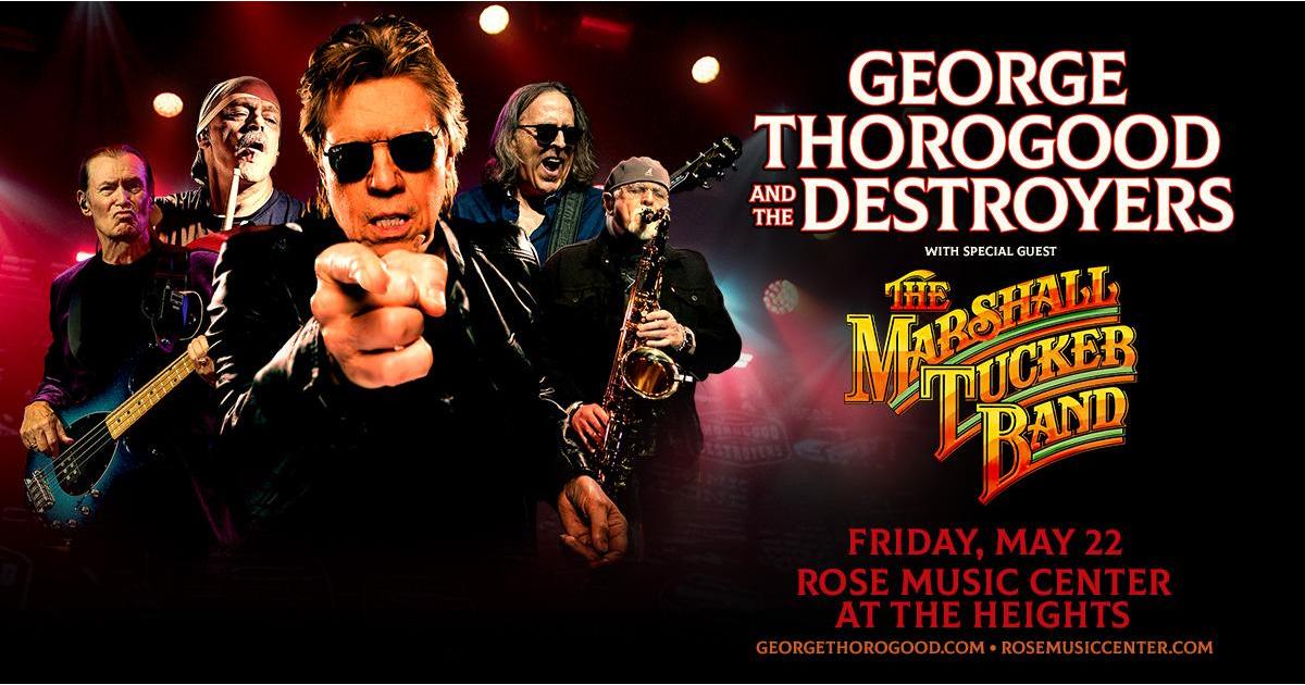 For the past 5+ decades, over 8,000 live shows and more than 15 million albums sold, George Thorogood & The Destroyers have been “The All-American Rock & Roll Party Band” (Goldmine Magazine). In celebration of their 53rd year of “playing rock & roll hot enough to melt the polar icecaps and flood the world’s major population centers” (Rolling Stone), the group announced today a continuation of The Baddest Show On Earth Tour – a stage-shaking, roof-raising, guitar-snarling blast. The 2026 tour includes a long-awaited return to Huber Heights, OH for a performance at Rose Music Center on Friday, May 22 with special guest, The Marshall Tucker Band.