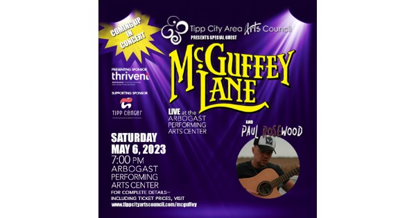 Tickets for McGuffey Lane with Guest Artist Paul RoseWood – LIVE at the APAC can be purchased now either online through the TCAAC website at Presenting McGuffey Lane (tippcityartscouncil.com) or in person at the Arbogast Performing Arts Center Ticket Box at 500 S. Dorset Rd, Troy, Ohio during Box Office hours from 12 PM to 4 PM. Doors will open at 6 PM; show starts at 7:00 PM. The APAC is handicapped-accessible with ample parking.