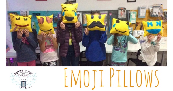 Emoji Pillows are all the rage and kids are loving this class! They get to choose what emoji they will applique the face to the yellow fabric and then sew together the pillow!