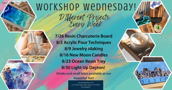 As Dayton's Premier DIY Pinterest-inspired studio, we offer relaxed, judgment-free, no-pressure workshops for you to craft and enjoy a beverage of choice with your favorite people. Our studio features a Bar serving Wine, Beer and Non-Alcohol Beverages as well as small bites to help get those creative juices flowing! We love it when our artists tap into their creativity and make it their own. Let’s Sip, Create, and Laugh the night away.