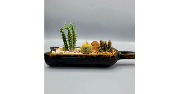 In this unique workshop you'll plant succulents & cactus in a 12" pre-cut wine bottle & choose embellishments to make your terrarium reflect you! Get ready to dig in and let your creativity flow!