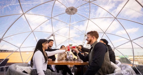 Enjoy our amazing view of Day Air Park and downtown Dayton! The team will prepare a cozy and inviting atmosphere with specialty décor, and heaters and blankets to keep you warm. Enjoy a complimentary glass of sparkling wine upon arrival, alongside the Valentine's Day Chef Specials and specialty cocktails. The Valentine's igloo experience is $60 per person.
