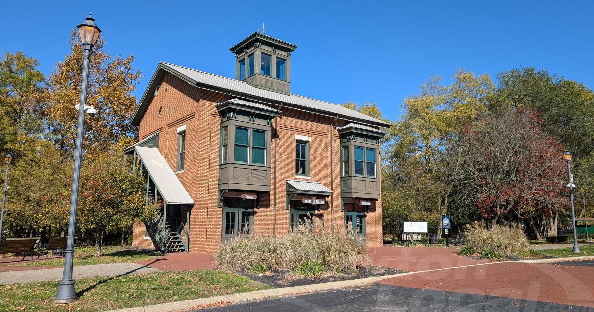 Xenia Station houses equipment rentals, concessions, classrooms, a visitor information center, and a bicycle patrol headquarters in a replica of a 19th century railroad building.