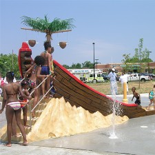 Dayton, OH - Beach themed spray park with great spray features. Come play on the pirate ship and spray water through the ship's cannon!