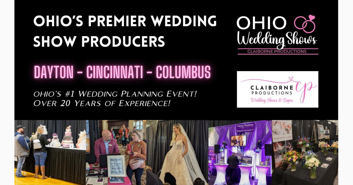 Claiborne Productions / Ohio Wedding Shows has proudly served the Ohio wedding market for over 20 years, producing more than 300 successful Wedding Shows and Expos across Dayton, Cincinnati, and Columbus. In that time, we've helped over 100,000 engaged couples plan their perfect day.