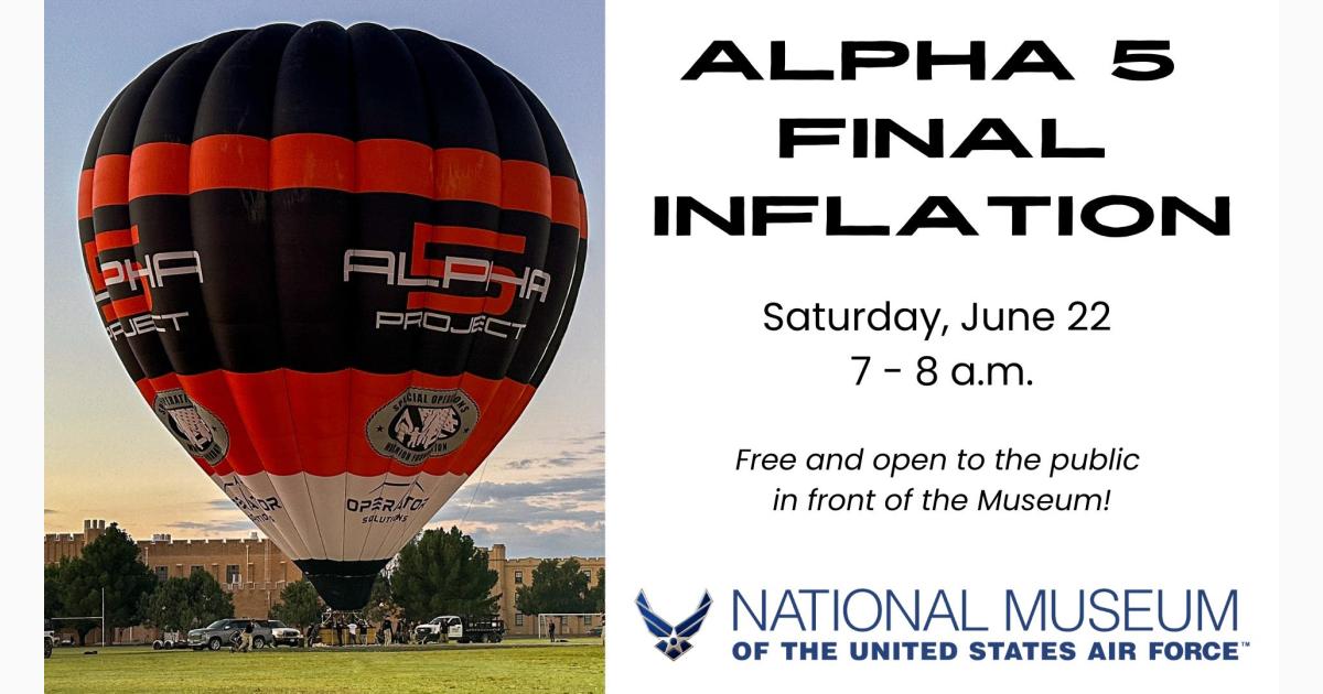 Bring a thermos of your favorite morning coffee and join us June 22 from 7- 8 a.m. on the front lawn as the Alpha 5 balloon is inflated a final time before it is donated to the Museum's collection. (Federal endorsement of coffee is not implied...feel free to bring whatever beverage makes you happy in the morning!)