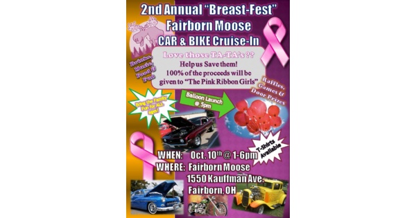 2nd Annual Breast-Fest Car & Bike Cruise-In is taking place at Fairborn Moose Lodge 1068, which is located at 1550 Kauffman Ave in Fairborn. Fairborn Moose Lodge 1068 - The Loyal Order of Moose is a fraternal and service organization founded in 1888.