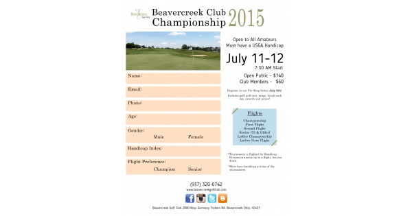 Beavercreek Golf Club Championship is taking place at Beavercreek Golf Club, which is located at 2800 New Germany Trebein Rd in Beavercreek. Beavercreek Golf Club - Nestled amongst woods and meandering streams, we are the ideal setting for your next golf outing, special event or business meeting.