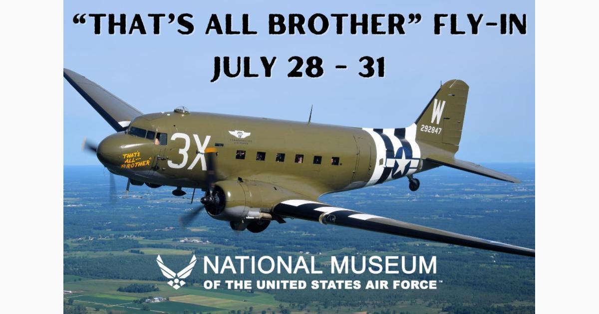 "That's All Brother" will fly into the National Museum of the U.S. Air Force the afternoon of July 28 and be on display for public viewing 9 a.m. - 5 p.m. July 29 - 31.