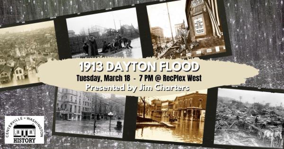 Centerville-Washington History presents “1913 Dayton Flood” by Jim Charters on Tuesday, March 18, at 7 pm at RecPlex West, 965 Miamisburg-Centerville Rd in Centerville.