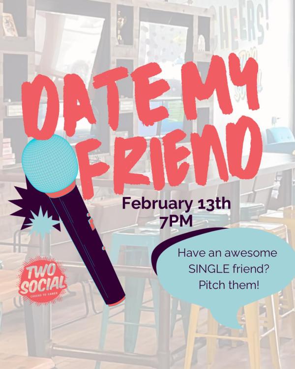 Join us for an unforgettable night of matchmaking, fun, and socializing at Date My Friend! This event is designed to create meaningful connections in a positive and welcoming atmosphere.