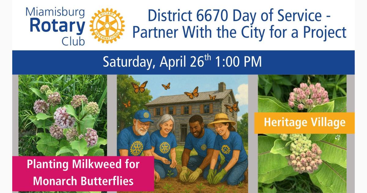 🌱 Join us for Rotary Day of Service! Get your hands dirty for a good cause as we partner with the City of Miamisburg to plant milkweed and help save the monarch butterflies!