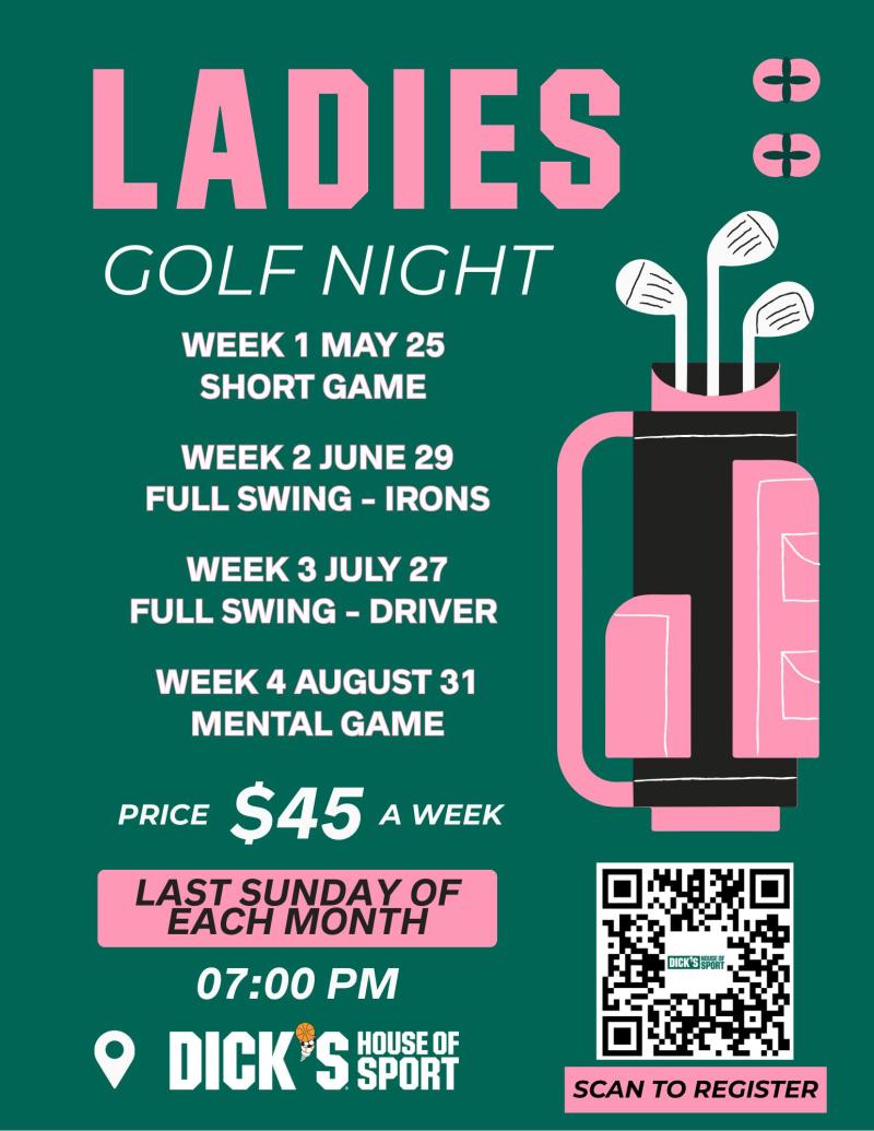 Ladies Golf Night is taking place at Dick's House of Sport, which is located at 2770 Fairfield Commons Blvd in BEAVERCREEK TOWNSHIP. Dick's House of Sport - We are your destination for sport. Find the top gear to perform your best, practice your skills, connect with your community and attend special events in our new interactive space.