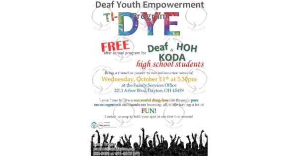 TI-DYE is a free Deaf Youth Empowerment program for Dayton area Deaf, Hard of Hearing and KODA high school students to learn to live a successful drug-free life.