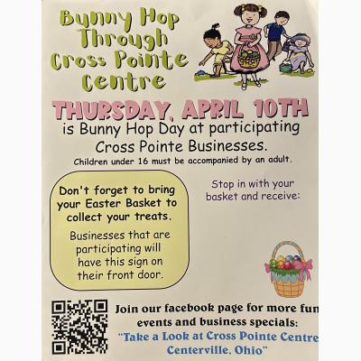 Bring your Easter basket and visit participating stores at Cross Pointe Centre Thursday, April 10th for treats and activities!