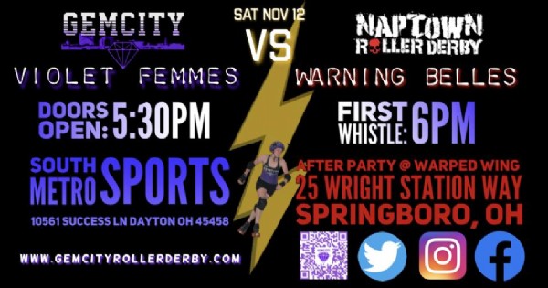 Gem City Roller Derby challenges the Indianapolis-based Naptown Roller Derby league on November 12th at Dayton South Metro Sportsplex!