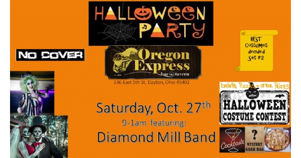 Diamond Mill Band will be hosting a Halloween Party/ Costume Contest at the Oregon Express from 9-1 with prizes for best costumes like: OE T-shirts, Free Pizzas, and mystery Halloween Grab Bags for costume winners! The prizes will be announced During Set #2 or beginning or Set #3. You don't want to miss this fun filled Halloween Extravaganza at the Oregon District's BEST BAR on the STRIP! FREE ADMISSION/ NO COVER CHARGE and everyone come on out in costume and let's make this Halloween one to remember!