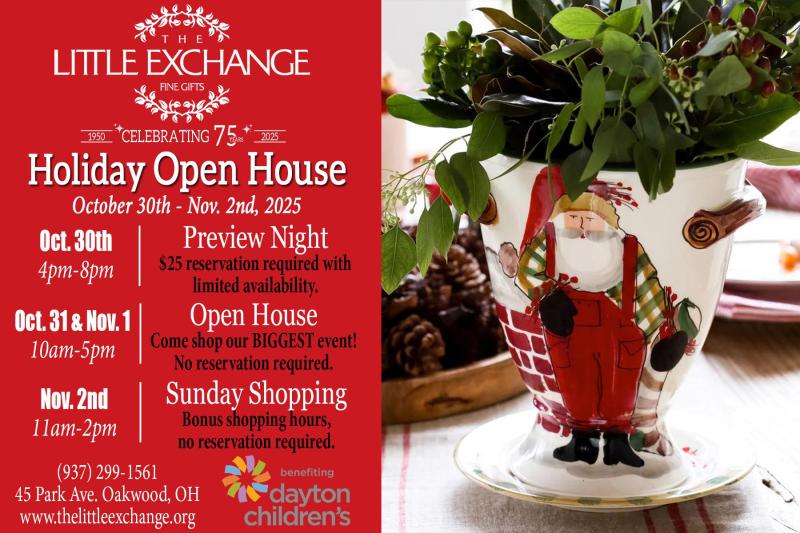 No matter which day you attend, the holiday cheer is contagious and you are sure to find something special for everyone on your list, including yourself! Mimosas and samples from some of our favorite foods that we sell in the shop will be offered. As always, complimentary gift wrapping for all of your purchases will be available. We can’t wait to see you and we thank you for your continued support of The Little Exchange and its mission to benefit Dayton Children’s Hospital.