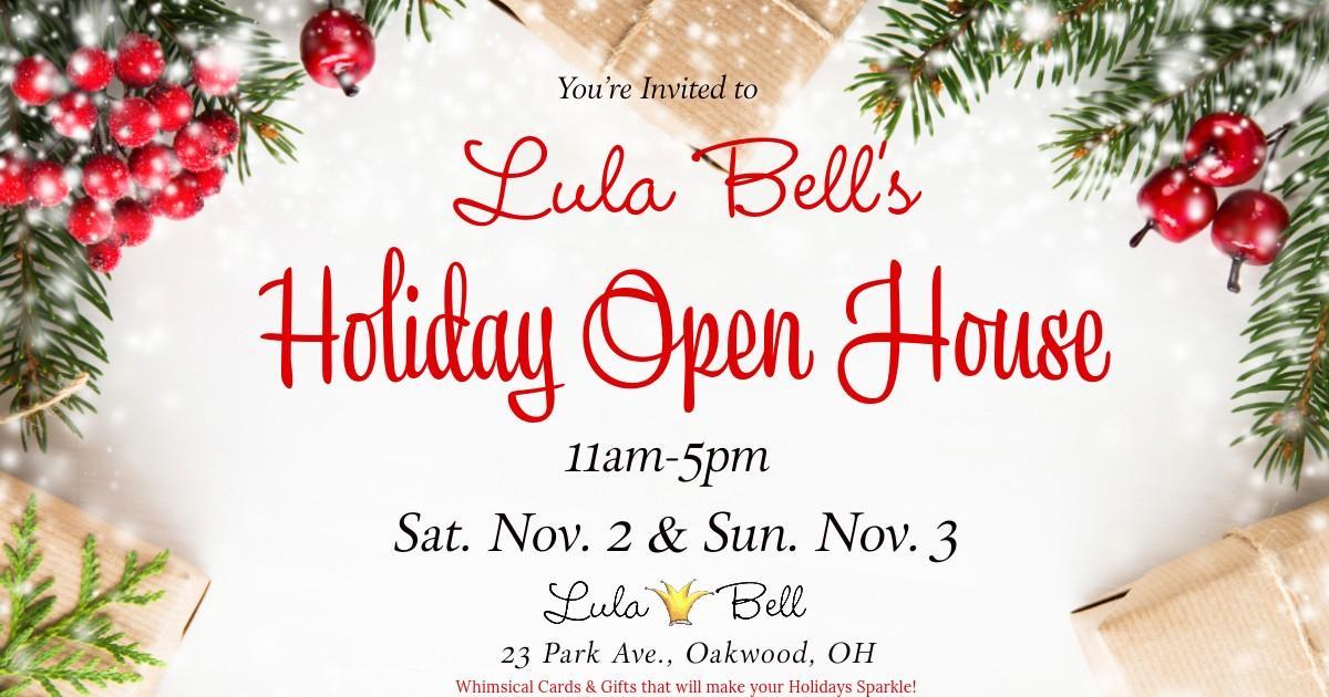 Holiday Open House at Lula Bell is taking place at Lula Bell Whimsical Cards and Gifts, which is located at 23 Park Avenue in Oakwood. Lula Bell Whimsical Cards and Gifts - Whimsical Cards and Gifts that are a "smile for your soul." Featuring locally made Greeting cards, Notecards and gifts. Independently and women owned Gift Shop.