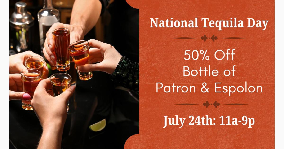 To honor the occasion, we're offering an incredible 50% off on Patron and Espolon tequila! Indulge in the smooth, premium taste of Patron, known for its exceptional quality and craftsmanship. Or savor the bold flavors of Espolon, a tequila beloved for its rich heritage and authentic taste.