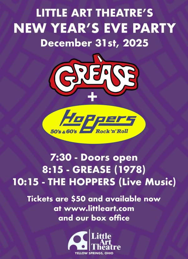 Don't miss Yellow Spring's signature New Year's Eve Celebration! Ring in the New Year at the Little Art Theatre with the classic film Grease (1978) followed by local favorites The Hoppers