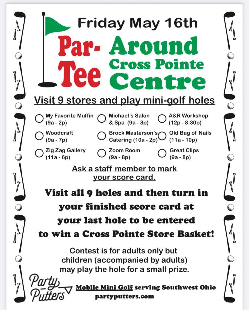 Par-Tee around Cross Pointe Centre is taking place at Events at Cross Pointe Centre, which is located at 101 East Alex Bell Road in Centerville. Events at Cross Pointe Centre - The businesses at Cross Pointe Centre have a variety of events for kids and families during the year