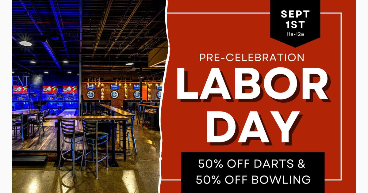 We are celebrating Labor Day a day early here at On Par Entertainment with 50% off both our Duckpin Bowling and our Darts! Also enjoy free soda all day long to keep yourself refreshed as you stack up the strikes and bullseyes!