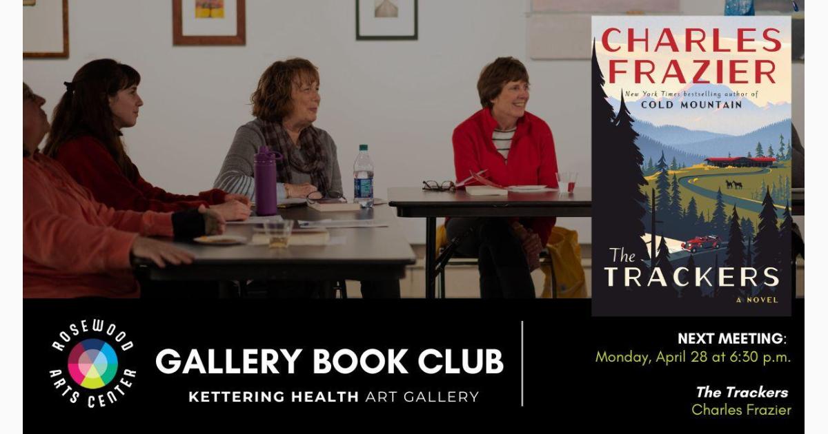 Join Rosewood Gallery and Dayton Metro Libraries in a lively discussion about a current book featuring art and/or artists as central elements. This quarter’s book is Trackers by Charles Frazier. Enjoy light refreshments and the company of fellow art and book lovers at our quarterly events. Free and open to the public, ages 16+. Books are made available for checkout at the Dayton Metro Library’s Kettering-Wilmington-Stroop branch.