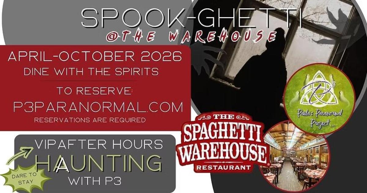 Spook-Ghetti at the Warehouse blends Italian dinner with a guided paranormal experience inside Dayton’s historic Spaghetti Warehouse. Explore haunted spaces, real stories, and the unknown with P3 Paranormal.