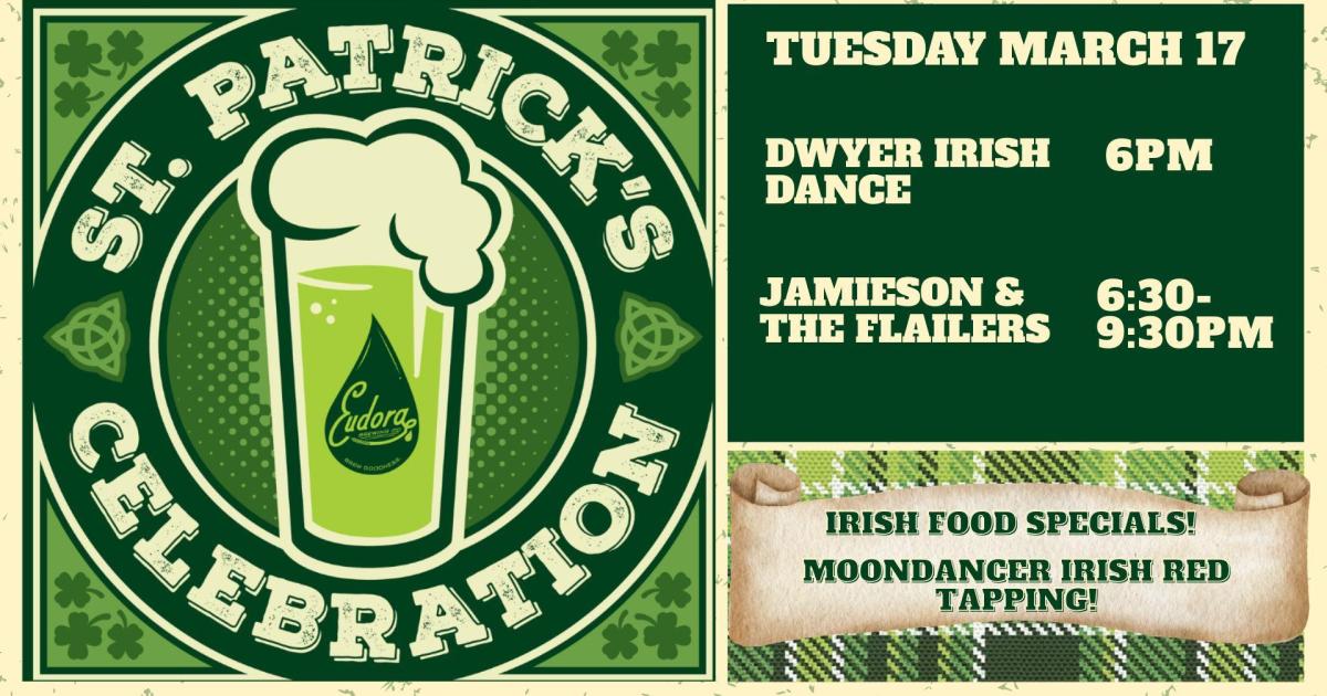 Join us on Tuesday, March 17 for a night of family-friendly St. Patrick's Day fun including Irish-inspired food specials, the tapping of our delicious Irish Red Ale, dancing and live music!