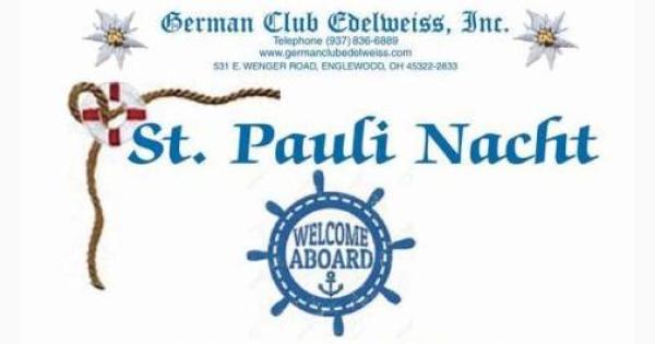You are cordially invited to The German Club Edelweiss for our St. Pauli Nacht (Sailors’ Night) on Saturday, March 14th. (St. Pauli, in Northern Germany, is part of Hamburg. It is situated on the Elbe River and joins the North Sea.) You are encouraged to wear nautical or sea faring attire if you wish.
