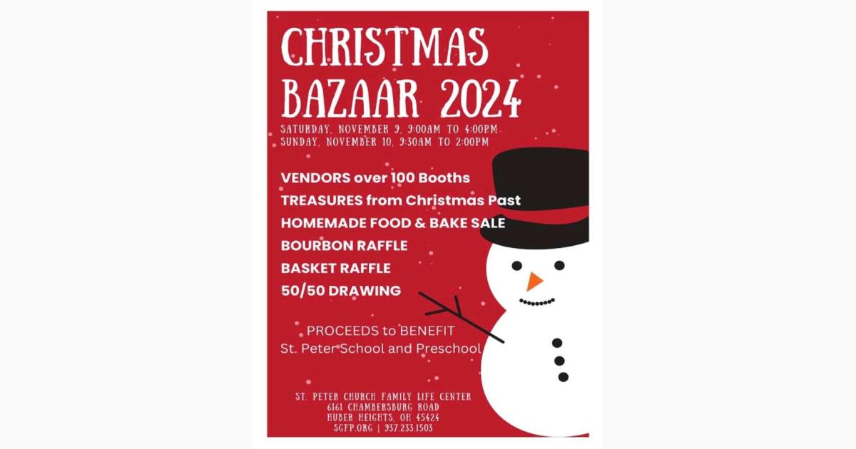 St Peter Christmas Bazaar is taking place at Saint Peter Catholic Church, which is located at 6161 Chambersburg Road in Huber Heights. Saint Peter Catholic Church - Huber Heights - Following the Apostolic calling of St. Peter, we as parishioners endeavor to be Christian witnesses of Jesus Christ.