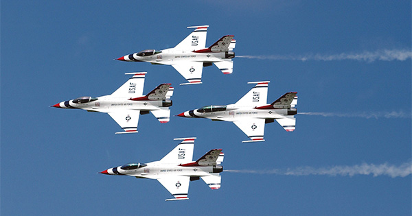 The Thunderbirds, which will be among the featured performers at this year's Vectren Dayton Air Show on June 24-25, perform a mix of formation flying and solo routines, highlighting the maximum capabilities of the F-16 Fighting Falcon and the professional qualities of the people who fly, maintain and support these aircraft. The squadron performs approximately 75 demonstrations each year, and more than 300 million people in all 50 states and 58 foreign countries have seen the red, white and blue jets in more than 4,000 aerial demonstrations.