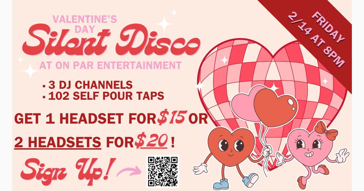 Celebrate Valentine's Day with a silent disco at On Par Entertainment - dance the night away with your special someone!