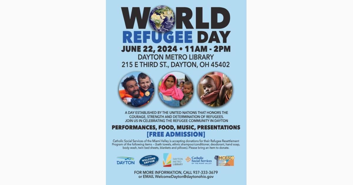 World Refugee Day is an annual celebration that honors the courage, strength, and determination of women, men, and children who are forced to flee their homes under threat of persecution, conflict, and violence. Come by to enjoy presentations, a panel of refugees, performances, music and refreshments. The event will be held on Saturday, June 22, 2024, from 11:00 a.m. - 2:00 p.m. at the Dayton Metro Library, 215 E 3rd St. Dayton, Ohio 45402.