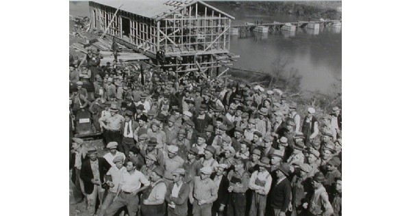 Featured Image: Lewis Wickes Hine (American, 1874–1940), A group showing some of the men working at Norris Dam site (abbr), 1933, silver gelatin print; Gift of Charles E. Hoffman, 1977.22.2, .29, .17